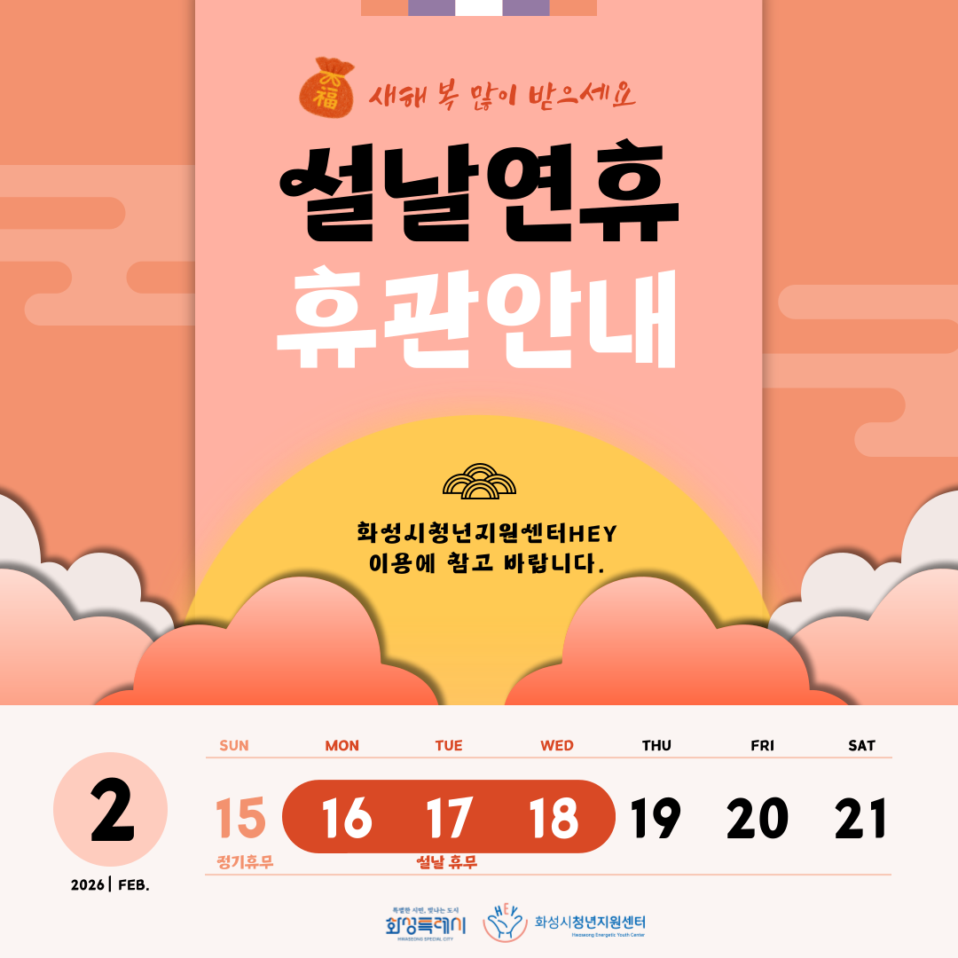 ★ 2. 16.(월) ~ 2. 18.(수): 설날 휴무