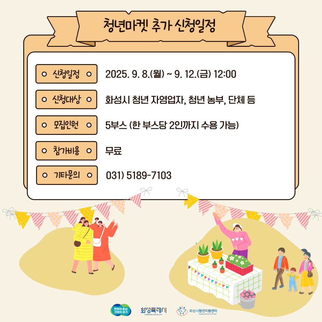 2025년 화성시청년지원센터 「청년마켓(동탄)」부스 운영자 추가 모집