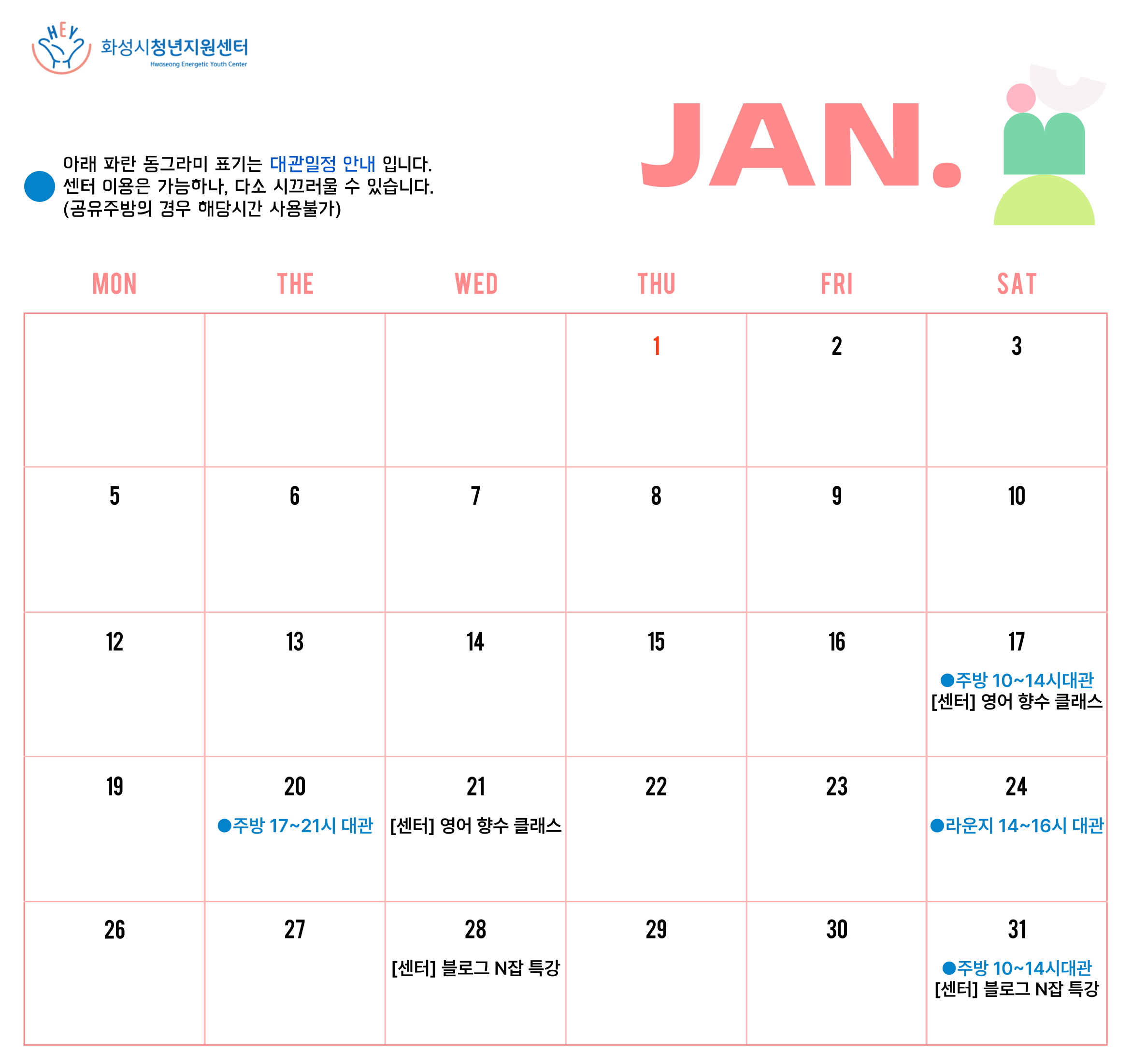 2026년 1월 HEY 프로그램 및 대관 일정 안내